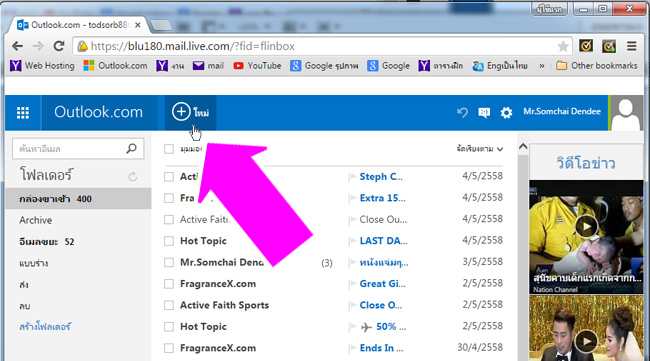 ( ภาพบน ) คลิ๊กไปที่คำว่า "ใหม่" ตรงที่ ลูกศรสีม่วง ชี้อยู่ในภาพข้างบน |