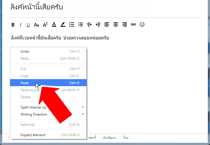 ( ภาพบน ) เลื่อนเม้าส์ไปที่คำสั่ง Paste ตรงที่ ลูกศรสีแดง ชี้อยุ่ในภาพข้างบนนี้ |