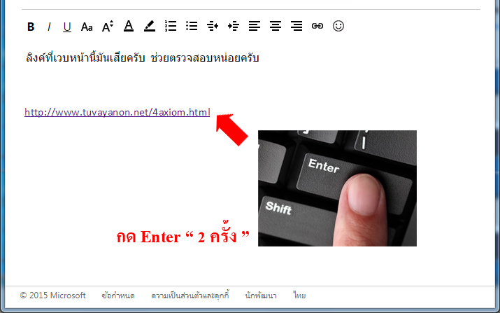 ( ภาพบน ) กลับมาที่อีเมลล์ แล้ว " ให้กด Enter " 2 ครั้ง "ตรงตัวหนังสือตัวสุดท้ายของลิงค์ |