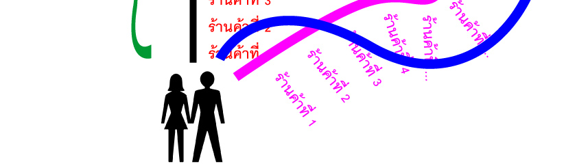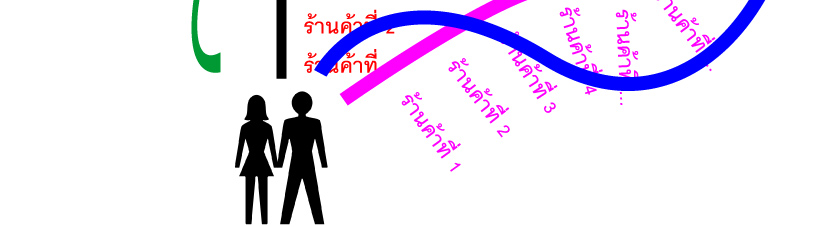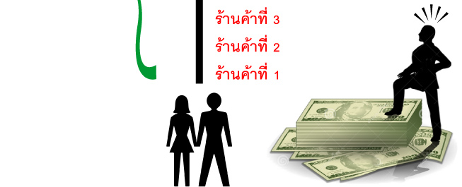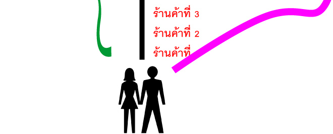 ,ร้านค้าที่ 3 และร้านค้าที่ 4 เรียงไปตามเส้นทางสู่เป้าหมาย (