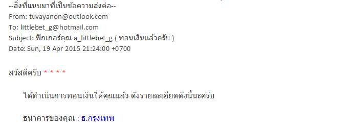 ( ภาพบน ) อีเมลล์ทอนเงิน ซึ่งมีความสำคัญมาก |