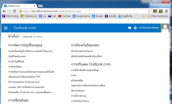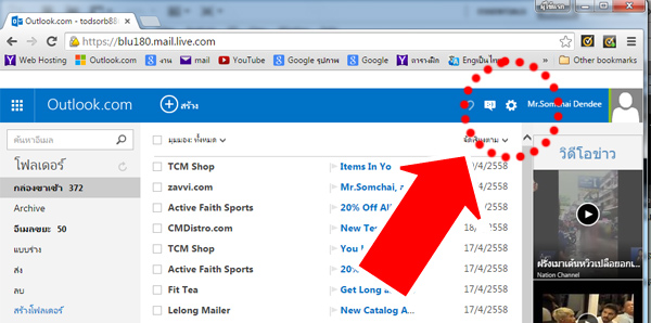 "สมมติ" ว่าข้างบนนี้ คืออีเมลล์ของคุณนะครับ ( คือสมมติว่าคุณใช้อีเมลล์ todsorb88@outlook.com และคุณชื่อ Mr.Somchai Dendee ) |