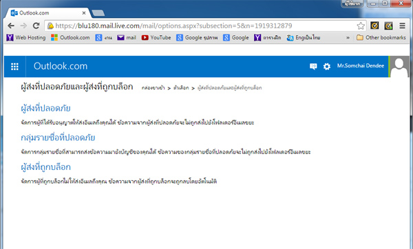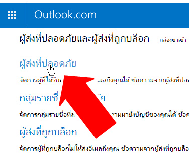( ภาพบน ) คลิ๊กไปที่ "ผู้ส่งที่ปลอดภัยและผู้ส่งที่ถูกบล็อก" |