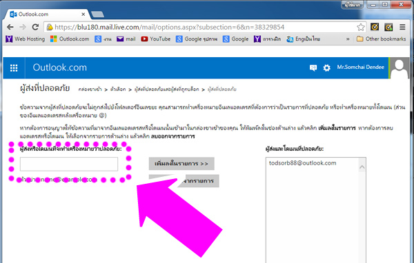 tuvayanon@hotmail.com ได้เข้ามาอยู่ตรงที่ ลูกศรสีแดง ชี้อยู่ในภาพข้างบนนี้ เรียบร้อยแล้ว |