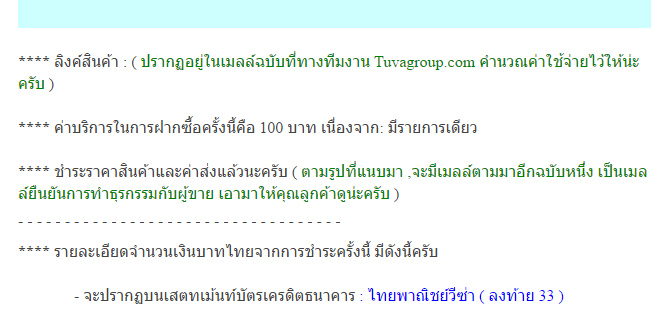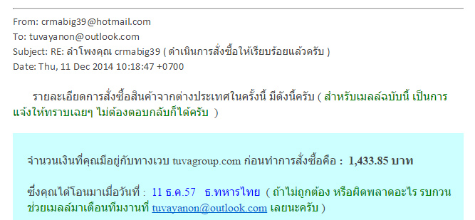 คือหลักฐานการยืนยันว่าทีมงาน Tuvagroup.com ได้ทำการสั่งซื้อสินค้าชิ้นนี้