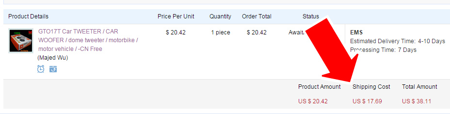 ชี้อยู่ในภาพข้างบน ) และมีค่าใช้จ่ายเฉพาะการส่งสูงถึง 17.69