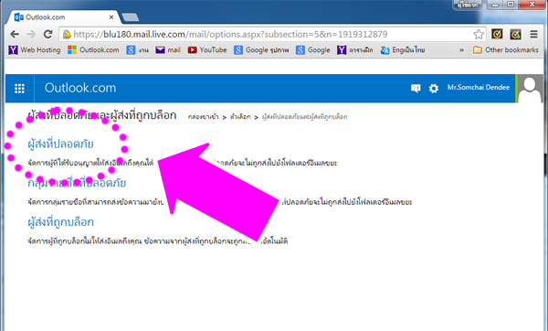 ( ภาพบน ) คลิ๊กไปที่ "ผู้ส่งที่ปลอดภัย"