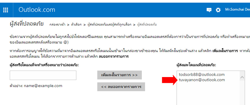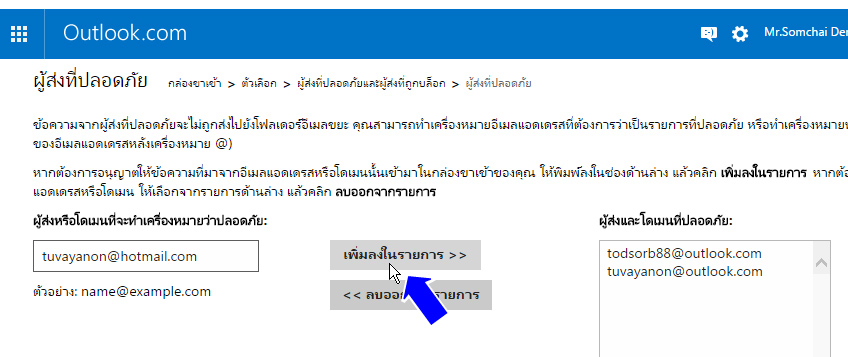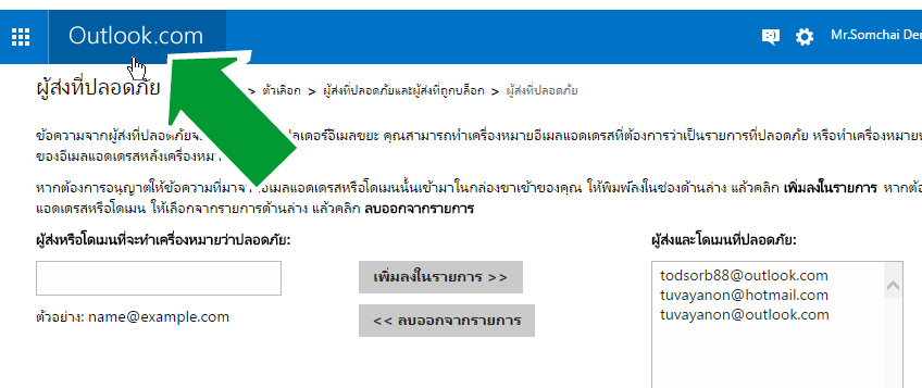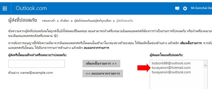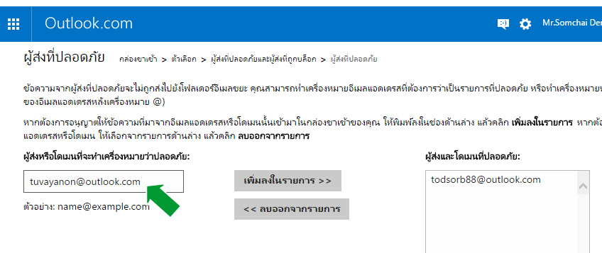 ( คือสมมติว่าคุณใช้อีเมลล์ todsorb88@outlook.com และคุณชื่อ Mr.Somchai  Dendee )
